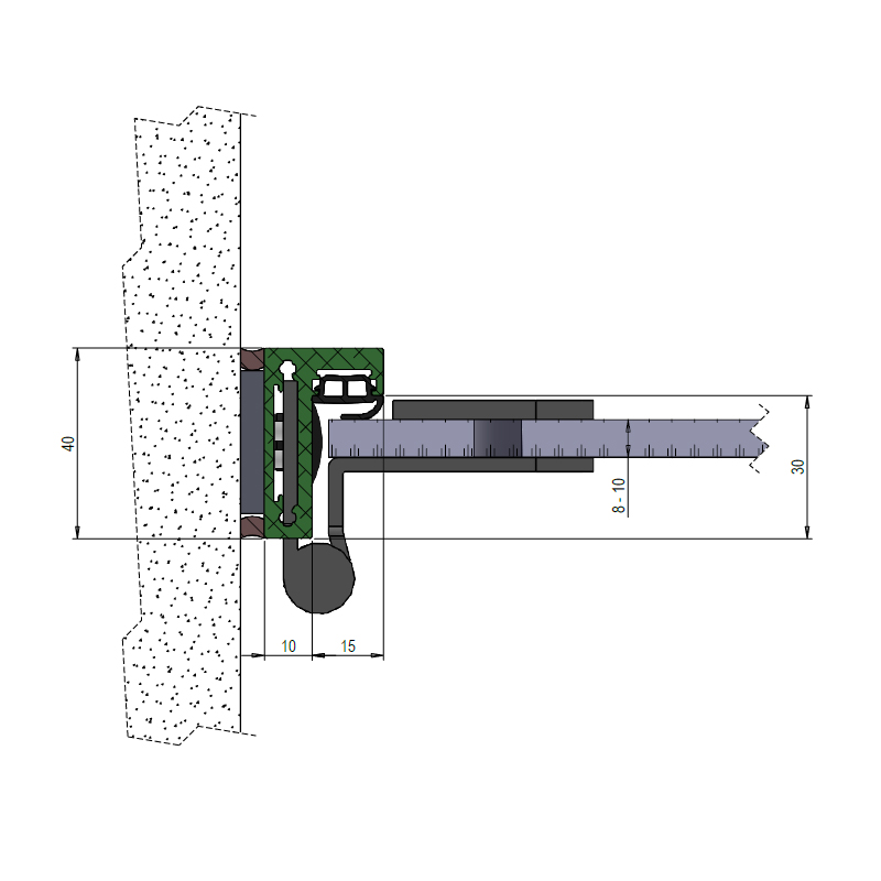 Daný typ zárubní umožňuje osazení pantů z řady V8... , VX, VN, A23 a skrytých pantů ze série Tectus a dalších. Možná hloubka falcu zárubní modelu BF 10-25 je 30 mm.